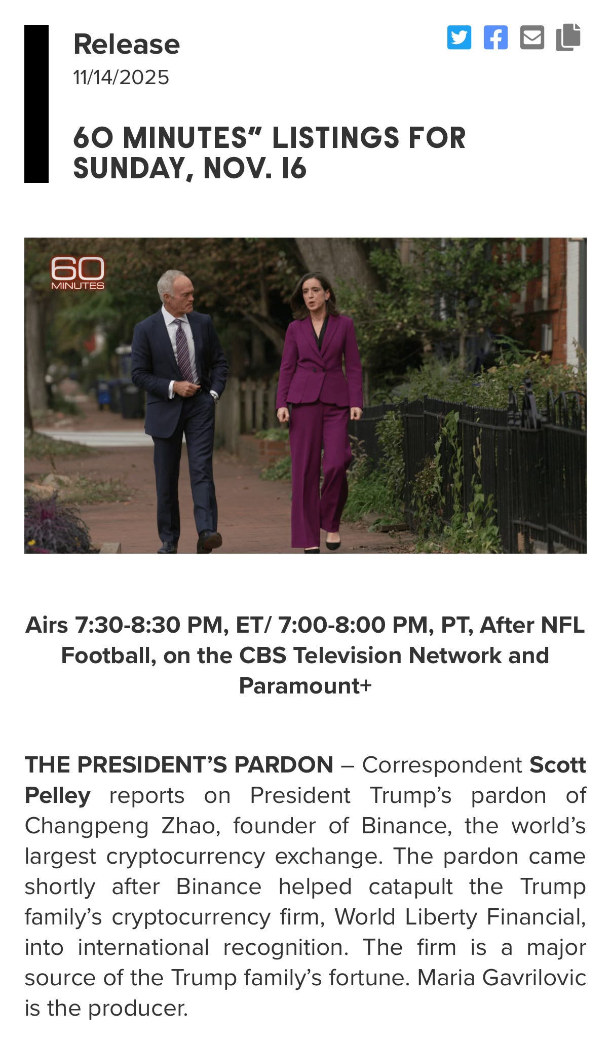 Hi all, I hope you can tune in for tonight’s episode of 60 Minutes on CBS. I’ll be talking about Donald Trump’s unprecedented use of the pardon power, focusing on the case of Binance founder and Trump family business partner Changpeng Zhao (known as “CZ”). I hope that this coverage will help to highlight how damaging, dangerous, and corrupt Donald Trump’s second-term pardons have been. I’ll have more here on this topic soon.